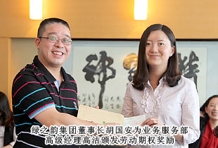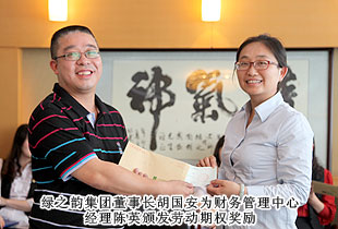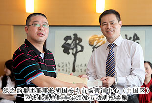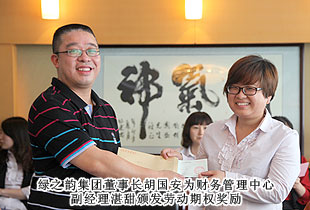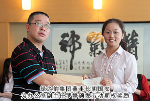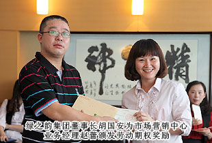 “綠之韻模式”的勞動股份期權(quán)獎勵機制,始于2011年,分為勞動股份期權(quán)(三年期)和勞動股份期權(quán)(五年期)兩種形式,兌付方式分為一次性兌付和逐年兌付兩種方式,開創(chuàng)了直銷企業(yè)主動將企業(yè)價值與普通員工共享的里程碑式先河。在2012年度勞動期權(quán)獎金頒發(fā)儀式上,在全場熱烈的掌聲中,綠之韻集團胡國安董事長親自為24位勞動期權(quán)獲獎員工頒發(fā)了獎勵支票,并一一合影留念。胡國安董事長在頒獎儀式上指出:中國夢、綠之韻夢歸根結(jié)底是所有人的夢,“綠之韻夢”的重要內(nèi)涵就是要讓每一位綠之韻人共同享有夢想成真的機會,共同享有同時代和綠之韻一起成長與進步的機會,共同享有榮耀和人生出彩的機會。胡國安董事長進一步強調(diào),在綠之韻事業(yè)中,每一位員工的崗位不同、職責(zé)不同、貢獻不同,但都是“綠之韻夢”的筑夢人和受益者。筑夢人和受益者,包含著兩個層面交相融匯、榮辱與共的深刻涵義:所謂“筑夢人”,就是綠之韻夢可以分解為每一位綠之韻人的夢。每一位綠之韻人只有將個人的夢想融入綠之韻事業(yè)中,才能最終走向成功,尊享榮耀。由此,每一位綠之韻人必須珍惜韶華、奮發(fā)有為,勇做奮進者、開拓者和奉獻者,為實現(xiàn)綠之韻夢付出智慧和力量;所謂“受益者”,就是綠之韻被偉大時代所賦予的歷史使命就是“員工富裕、企業(yè)興旺、社會和諧”,要為員工、為更多的人謀福利、造福祉,讓員工、讓更多人共享人生出彩的機會。目前,不論是公司現(xiàn)有十三大福利獎勵,還是勞動期權(quán)獎勵機制,綠之韻就是要讓每一位員工都能感受到自己就是綠之韻血脈相連的利益共同體,都能分享到企業(yè)發(fā)展成果的激動和欣慰。這是綠之韻感情所系,也是綠之韻責(zé)任所在!