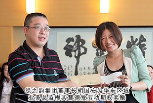 引入“員工勞動期權(quán)”這一概念,并付諸于千金一諾的主動性企業(yè)行為,是綠之韻集團在其發(fā)展過程中區(qū)別于其他企業(yè)的顯著標(biāo)志,全面推動著“綠之韻夢”從夢想照進現(xiàn)實的歷史進程。2013年5月6日下午,綠之韻集團綠之韻2013年第一季度市場工作匯報暨2012年度勞動期權(quán)獎金頒發(fā)儀式成功舉行。綠之韻集團董事長胡國安、董事常務(wù)副總裁勞嘉、執(zhí)行總經(jīng)理龔振、財務(wù)總監(jiān)劉淑娟、市場營銷中心(中國區(qū))業(yè)務(wù)總經(jīng)理何健、市場營銷中心(中國區(qū))副總經(jīng)理諶獻軍、市場營銷中心(中國區(qū))市場運營總監(jiān)陳晨、綠之韻國際商學(xué)院院長蔣林翰、市場營銷中心營銷副總裁李繼前及2012年度勞動股份期權(quán)獲獎員工共計35人出席本次會議。會議由綠之韻集團董事、常務(wù)副總裁勞嘉主持。