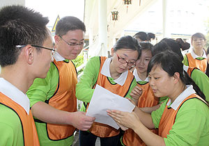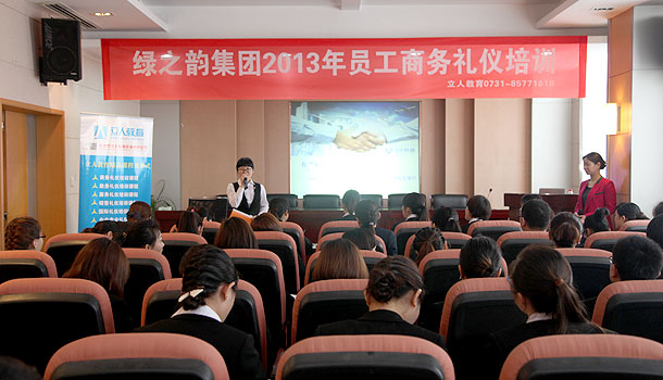 2013年4月27日—28日,綠之韻集團(tuán)聯(lián)合長沙立人教育組織全體員工開展了為期兩天的“凝心聚力、團(tuán)結(jié)奮進(jìn)”員工拓展訓(xùn)練營活動。此次活動,分為全員商務(wù)禮儀培訓(xùn)會和戶外拓展訓(xùn)練兩個階段進(jìn)行。27日,為豐富員工的業(yè)余生活,進(jìn)一步提升員工形象氣質(zhì),展示員工積極向上的精神風(fēng)貌,綠之韻集團(tuán)2013年員工商務(wù)禮儀培訓(xùn)會在集團(tuán)總部六樓會議廳舉行,國際高級禮儀培訓(xùn)師周曉莉為全體員工作了“有‘禮’走遍天下”講座,系統(tǒng)地講授了儀容、儀表、氣質(zhì)提升、人際溝通技巧、餐宴禮儀等知識,員工受益匪淺,反響強(qiáng)烈。