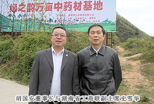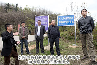 2013年4月13日,為深入了解湖南省“萬企聯村?共同發(fā)展”30個省級優(yōu)秀示范項目之一的——綠之韻益陽安化萬畝中藥材種植基地建設情況,湖南省工商聯副主席史雪華、湖南省工商聯扶貧處處長甘露、會員處處長謝明亮、副處長張耿、中共湖南省委統(tǒng)戰(zhàn)部經濟處副處長周桂忠一行赴綠之韻安化萬畝中藥材基地實地考察。中共安化縣委常委、政法委書記羅必勝,安化縣冷市鎮(zhèn)鎮(zhèn)長周華山,湖南省政協(xié)委員、省工商聯常委、長沙市工商聯副主席胡國安陪同考察。