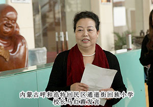 馬紅霞校長在發(fā)言中表示:首先代表全校師生熱烈祝賀綠之韻2013年高峰論壇取得圓滿成功,祝愿民族企業(yè)綠之韻未來業(yè)績蒸蒸日上。她說,幾年來我校和綠之韻集團(tuán)建立起了深厚的友誼,堪稱民族企業(yè)與民族教育和諧共建的典范。在綠之韻的幫助和影響下,我們將綠之韻“水的精神”引入到校本課程,編撰系列校本教材,成為學(xué)校思想品德教育的一大亮點(diǎn),引起了內(nèi)蒙古電視臺的關(guān)注,并予以報(bào)道。