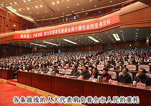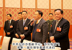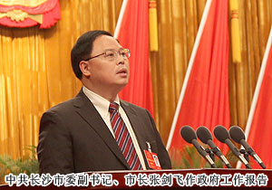 長(zhǎng)沙市人大常委會(huì)主任余合泉主持會(huì)議并宣布大會(huì)開幕。在熱烈的掌聲中,中共長(zhǎng)沙市委副書記、市長(zhǎng)張劍飛首先作政府工作報(bào)告,描繪了未來5年長(zhǎng)沙的四個(gè)發(fā)展目標(biāo):建設(shè)經(jīng)濟(jì)繁榮、活力迸發(fā)的現(xiàn)代中心城市;兩型引領(lǐng)、環(huán)境優(yōu)美的生態(tài)宜居之都;開放包容、美麗獨(dú)立的國際文化名城;生活富足、社會(huì)公平的和諧幸福家園。張市長(zhǎng)說,過去五年,在市委的堅(jiān)強(qiáng)領(lǐng)導(dǎo)下,我們以科學(xué)發(fā)展觀為統(tǒng)領(lǐng),搶抓中部崛起和“兩型社會(huì)”建設(shè)的戰(zhàn)略機(jī)遇,科學(xué)應(yīng)對(duì)國際金融危機(jī)的嚴(yán)峻挑戰(zhàn),成功抗擊歷史罕見的雨雪冰凍災(zāi)害,推進(jìn)創(chuàng)業(yè)之都、宜居城市、幸福家園建設(shè),圓滿完成了市第十三屆人民代表大會(huì)第一次會(huì)議以來確定的各項(xiàng)目標(biāo)任務(wù)。2012年,全市地區(qū)生產(chǎn)總值達(dá)6510億元,年均增長(zhǎng)14.6%,經(jīng)濟(jì)總量居省會(huì)城市第7位,五年前進(jìn)了5位;城市綜合競(jìng)爭(zhēng)力由第24位躍升到第10位,進(jìn)入全國十強(qiáng)、全球十快。我們必須認(rèn)真貫徹落實(shí)黨的十八大精神,按照市第十二次黨代會(huì)確定的“城市國際化、產(chǎn)業(yè)高端化、城鄉(xiāng)一體化、發(fā)展兩型化、管理法治化,率先建成兩型城市和實(shí)現(xiàn)全面小康”的戰(zhàn)略目標(biāo),著力轉(zhuǎn)變發(fā)展方式、推動(dòng)改革創(chuàng)新、提升城市品質(zhì)、推進(jìn)城鄉(xiāng)一體、創(chuàng)新社會(huì)管理、保障改善民生,努力建設(shè)更加富裕、秀美、文明、幸福的大長(zhǎng)沙。