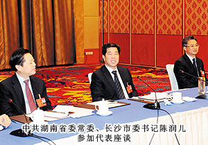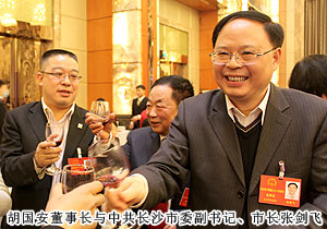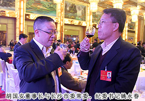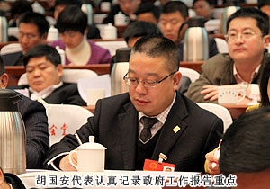 “今天聆聽了政府工作報(bào)告,報(bào)告內(nèi)容凝練。每個(gè)數(shù)字都有力地彰顯出長(zhǎng)沙發(fā)展的速度,令我感到十分振奮?!焙鷩泊碓诮邮荛L(zhǎng)沙新聞?lì)l道記者采訪中表示。開幕式后,省委常委、市委書記陳潤(rùn)兒,市委副書記、市長(zhǎng)張劍飛一行來到各地區(qū)代表團(tuán),與出席市十四屆人大一次會(huì)議的代表們一起審議政府工作報(bào)告,聽取代表們的建議和意見。感受身邊的巨變,暢談過去五年的成績(jī),代表們一致認(rèn)為報(bào)告分析形勢(shì)客觀到位,總結(jié)成績(jī)實(shí)事求是。報(bào)告主題突出,高屋建瓴,準(zhǔn)確的數(shù)字具有很強(qiáng)的說服力,具體的目標(biāo)體現(xiàn)著政府求真務(wù)實(shí)的作風(fēng),清晰的思路昭示著長(zhǎng)沙的美好未來。會(huì)上,就2013年長(zhǎng)沙經(jīng)濟(jì)社會(huì)如何保持平穩(wěn)快速發(fā)展,代表們紛紛獻(xiàn)計(jì)獻(xiàn)策。陳潤(rùn)兒書記、張劍飛市長(zhǎng)分別帶領(lǐng)長(zhǎng)沙市領(lǐng)導(dǎo)成員與委員們共同協(xié)商討論,仔細(xì)傾聽每位代表發(fā)言,認(rèn)真記錄,還不時(shí)一起探討。作為長(zhǎng)沙國家生物產(chǎn)業(yè)園代表,胡國安代表在分組報(bào)告中對(duì)園區(qū)2012年取得的成績(jī)作了詳細(xì)匯報(bào)。并提出“加快四化兩型建設(shè),以非公經(jīng)濟(jì)促進(jìn)城鄉(xiāng)一體化進(jìn)程,加大對(duì)實(shí)體經(jīng)濟(jì)支持力度,踐行實(shí)業(yè)強(qiáng)市、實(shí)業(yè)強(qiáng)省、實(shí)業(yè)強(qiáng)國之路”的建議。同時(shí),針對(duì)政府報(bào)告中提到的:建設(shè)生態(tài)長(zhǎng)沙、精美長(zhǎng)沙,推進(jìn)“沿江建設(shè)、跨江發(fā)展”,以及積極推進(jìn)以瀏陽河九道灣為品牌;完善湘江生態(tài)經(jīng)濟(jì)帶,打造“瀏陽河九道灣”品牌,規(guī)劃改造撈刀河、溈水河、靳江河、圭塘河風(fēng)光帶等宜居都市的政府規(guī)劃,胡國安代表結(jié)合園區(qū)、綠之韻集團(tuán)實(shí)際,詳盡闡述了綠之韻集團(tuán)的綠色經(jīng)濟(jì)發(fā)展思路,以及在瀏陽河與撈刀河畔建立生態(tài)休閑區(qū)、建立五星級(jí)生態(tài)酒店、別墅群等未來發(fā)展規(guī)劃。陳潤(rùn)兒書記認(rèn)真聆聽胡國安代表的發(fā)言,邊聽邊記,對(duì)發(fā)言中提及的思路和建議表示高度的肯定。陳書記在胡國安代表發(fā)言后說,黨的“十八大”將城鄉(xiāng)一體化與實(shí)業(yè)興國作為重點(diǎn)工作,我們要大膽推進(jìn)改革,釋放發(fā)展活力,政府的權(quán)力要?dú)w位,服務(wù)要到位,進(jìn)一步加大對(duì)實(shí)體經(jīng)濟(jì)發(fā)展的支持力度。
