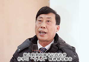 綠之韻集團(tuán)黨支部書(shū)記許達(dá)仲在大會(huì)作了題為《學(xué)習(xí)十八大精神,堅(jiān)持理想信念》的學(xué)習(xí)輔導(dǎo)報(bào)告,報(bào)告針對(duì)黨的“十八大”會(huì)議的特點(diǎn)、過(guò)程以及會(huì)議基本情況進(jìn)行了詳細(xì)介紹,并從“十八大”要點(diǎn)、關(guān)鍵詞、新要求、新特點(diǎn)、黨章修改等幾個(gè)方面重點(diǎn)解讀了黨的十八大會(huì)議有關(guān)文件精神。對(duì)胡錦濤同志所作的題為《堅(jiān)定不移沿著中國(guó)特色社會(huì)主義道路前進(jìn)為全面建成小康社會(huì)而奮斗》的十八大報(bào)告中的旗幟路線、指導(dǎo)思想、腐敗問(wèn)題、司法、未來(lái)目標(biāo)、工作成績(jī)、政治體制改革、黨建工作、黨內(nèi)民主、軍隊(duì)建設(shè)、臺(tái)灣問(wèn)題、國(guó)際事務(wù)等12個(gè)重大主題進(jìn)行了逐條闡述,全面解讀了報(bào)告的精神實(shí)質(zhì)。輔導(dǎo)報(bào)告聯(lián)系實(shí)際,內(nèi)容豐富,深入淺出,通俗易懂,具有很強(qiáng)的理論性、針對(duì)性和指導(dǎo)性。