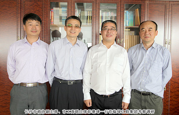 2012年10月13日,長(zhǎng)沙市政協(xié)副主席、市工商聯(lián)主席彭繼球,長(zhǎng)沙市委統(tǒng)戰(zhàn)部副部長(zhǎng)、工商聯(lián)黨組書記饒福明,長(zhǎng)沙市工商聯(lián)副主席傅純一行蒞臨綠之韻集團(tuán)考察調(diào)研,綠之韻集團(tuán)董事長(zhǎng)胡國(guó)安全程陪同。