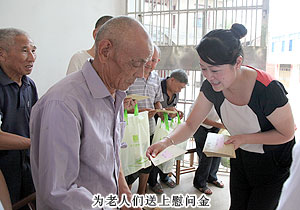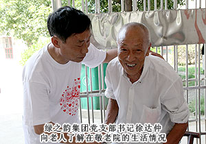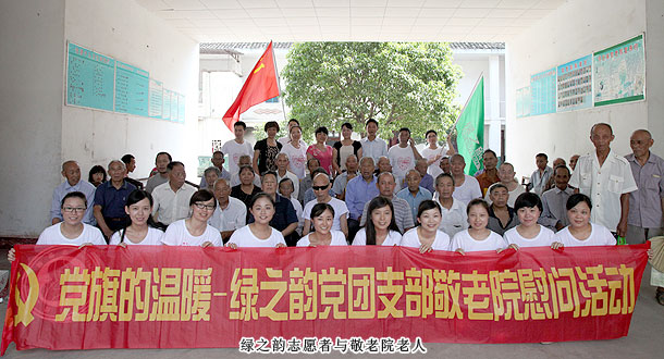 2012年8月3日上午,綠之韻黨支部又攜手瀏陽市洞陽鎮(zhèn)政府舉辦了主題為“黨旗的溫暖”的敬老院慰問活動,綠之韻集團董事常務副總裁勞嘉、黨支部書記許達仲帶領20名綠之韻黨團員代表、綠之韻愛心志愿者來到洞陽鎮(zhèn)敬老院看望孤寡老人,為老人們送上愛心物資和關懷。