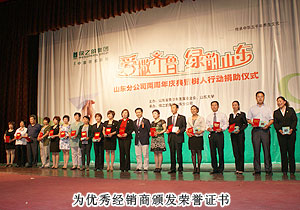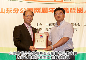 綠之韻執(zhí)行總經(jīng)理龔振發(fā)表致辭,代表綠之韻集團(tuán)對山東分公司兩周年慶典表示衷心祝賀,感謝對多年來山東地區(qū)綠之韻伙伴與山東分公司風(fēng)雨同舟、和衷共濟(jì),并將5萬元愛心款物捐贈給山東省青少年發(fā)展基金會副秘書長姜大鵬。姜秘書長也回贈綠之韻集團(tuán)希望工程捐助牌匾,同時向綠之韻愛心經(jīng)銷商頒發(fā)了象征慈善與愛心的捐助證書。10位獲資助的大學(xué)生深深鞠躬表達(dá)心中的感謝,一曲感恩的心使整個會場籠罩了一層愛的光芒。
