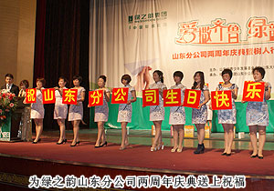 慶典通過“回顧與展望”、“樹人行動””、“嘉賓分享”三個篇章,回顧了山東綠之韻的成長歷程,弘揚(yáng)綠之韻慈善文化,講述了綠之韻人自己的故事。在熱情的開場舞蹈之后,分公司全體員工以詩歌朗誦的形式為本次慶典開幕致辭。在場經(jīng)銷商一起回首綠之韻山東分公司從孕育到創(chuàng)立,從創(chuàng)業(yè)到發(fā)展,從發(fā)展到壯大的所經(jīng)歷曲折和艱辛、快樂和成就。