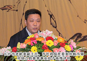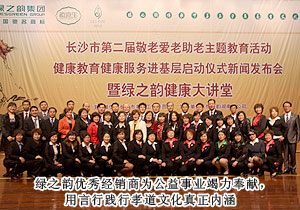 2012年4月17日,由綠之韻集團(tuán)與長(zhǎng)沙市老齡委共同舉辦的長(zhǎng)沙市第二屆敬老愛老助老活動(dòng)啟動(dòng)儀式在長(zhǎng)沙市人民政府隆重舉行。原中共長(zhǎng)沙市委副書記張慧明,原長(zhǎng)沙市人大主任、市老齡委顧問楊宏,原長(zhǎng)沙市人大副主任、市老齡委顧問劉湘皋,湖南省老齡委辦公室副主任李永勝、劉憲銘,長(zhǎng)沙市老齡委常務(wù)副主任、市民政局局長(zhǎng)曹再興,長(zhǎng)沙市老齡委副主任、市民政局黨委委員楊為錦,長(zhǎng)沙市老齡委副主任、辦公室主任廖肇聯(lián)等蒞臨指導(dǎo),長(zhǎng)沙市工商行政管理局、財(cái)政局、科學(xué)技術(shù)局等50家合作政府機(jī)關(guān)、企業(yè)代表與綠之韻優(yōu)秀經(jīng)銷商張建軍、黃翔、李正元等共計(jì)1300余人參加了啟動(dòng)儀式。