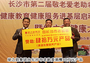 啟動(dòng)儀式上,綠之韻集團(tuán)副總經(jīng)理何健代表綠之韻慈善基金向長(zhǎng)沙市老齡委捐贈(zèng)40萬(wàn)元產(chǎn)品,為老人送上關(guān)愛與溫暖。綠之韻集團(tuán)執(zhí)行總經(jīng)理龔振表示:綠之韻堅(jiān)持以社會(huì)公益為己任,并大力展開“尋找百歲老人”“健康社區(qū)行”“健康大講堂”等公益活動(dòng),積極承擔(dān)社會(huì)責(zé)任,此次全體綠之韻人要以敬老愛老助老活動(dòng)為契機(jī),弘揚(yáng)中華民族“老吾老以及人之老”的傳統(tǒng)美德,號(hào)召全社會(huì)關(guān)注老人健康,關(guān)愛老人生活。會(huì)上,綠之韻集團(tuán)憑借在老年公益慈善行動(dòng)中的突出貢獻(xiàn)被評(píng)為“長(zhǎng)沙市老年健康事業(yè)共建單位”;集中華五千年養(yǎng)生文化之大成的“清調(diào)補(bǔ)衡”綠之韻養(yǎng)生套盒被指定為“老年人健康養(yǎng)生專用產(chǎn)品”;綠之韻集團(tuán)董事長(zhǎng)胡國(guó)安被授予“崇德積善慈父孝子為人先,弘揚(yáng)孝道敬老愛親我做起”榮譽(yù)匾牌,長(zhǎng)沙市老齡委副主任、市民政局黨委委員楊為錦、廖肇聯(lián)為綠之韻集團(tuán)頒發(fā)榮譽(yù)。楊為錦表示:綠之韻為推動(dòng)老齡健康事業(yè)發(fā)展積極奉獻(xiàn),是敬老愛老助老的模范企業(yè),希望未來(lái)能繼續(xù)發(fā)揮企業(yè)優(yōu)勢(shì),讓更多老年人安享健康、幸福的晚年。