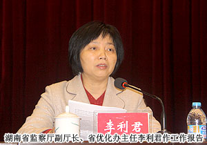 會(huì)議由湖南省紀(jì)委副書記、省監(jiān)察廳廳長(zhǎng)葛洪元主持。湖南省監(jiān)察廳副廳長(zhǎng)、省優(yōu)化辦主任李利君作工作報(bào)告。會(huì)上,湖南省委常委、省紀(jì)委書記黃建國(guó)發(fā)表“加強(qiáng)效能和優(yōu)化監(jiān)督工作,促進(jìn)經(jīng)濟(jì)和社會(huì)健康發(fā)展”的主題講話,充分肯定了近幾年效能和優(yōu)化監(jiān)督工作取得的成績(jī),著重強(qiáng)調(diào)了認(rèn)識(shí)效能和優(yōu)化監(jiān)督工作的重要性,并鼓勵(lì)全體監(jiān)督測(cè)評(píng)站點(diǎn)員要珍惜榮譽(yù),強(qiáng)化責(zé)任,不負(fù)重托,認(rèn)真履職。