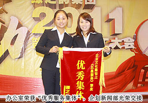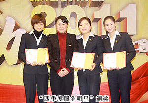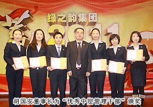 會(huì)議最激動(dòng)人心的時(shí)刻屬頒獎(jiǎng)環(huán)節(jié),為表彰過(guò)去一年里兢兢業(yè)業(yè)、踏實(shí)肯干、辛勤付出的優(yōu)秀員工,“四季度服務(wù)明星”“優(yōu)秀服務(wù)集體”“年度優(yōu)秀職員”“年度優(yōu)秀基層管理干部”“年度優(yōu)秀中層管理干部”等獎(jiǎng)項(xiàng)相繼頒發(fā)。同時(shí),通過(guò)全體同事的投票選舉,“陽(yáng)光天使”獎(jiǎng)項(xiàng)首次頒發(fā),樂(lè)于助人、團(tuán)結(jié)同事的辦公室李倩婷榮獲該稱號(hào)。透過(guò)每一位獲獎(jiǎng)代表的分享,他們的工作態(tài)度:忠誠(chéng)、敬業(yè)和專業(yè),無(wú)不讓人心生敬意。胡國(guó)安董事長(zhǎng)在總結(jié)發(fā)言中表示:感謝每一位員工不離不棄的追隨,在綠之韻邁入第九個(gè)發(fā)展年頭之際,要向每一位同仁道一聲誠(chéng)摯的感謝。綠之韻在2011年從各方面夯實(shí)著基礎(chǔ),為2012年的突破做好了充足的準(zhǔn)備,“蓄”為積淀,“力”為爆發(fā),只要全體綠之韻人上下一心,同心同步,我們定能龍騰海天,再創(chuàng)新高!
