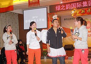 新春團(tuán)拜會(huì)是綠之韻每一位員工年終狂歡的舞臺(tái),集團(tuán)領(lǐng)導(dǎo)、分公司、下屬基地的代表們歡聚一堂,各部門全員參與,準(zhǔn)備了幽默的小品、創(chuàng)意的整蠱、歡動(dòng)的舞蹈及各類令人捧腹的節(jié)目,熱熱鬧鬧迎新春!龍騰虎躍2012,我們來(lái)了!