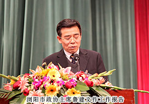 2011年12月25日,政協(xié)瀏陽(yáng)市第八屆委員會(huì)第六次會(huì)議在瀏陽(yáng)歐陽(yáng)予倩大劇院隆重開幕。長(zhǎng)沙市政協(xié)副主席、工商聯(lián)主席彭繼球,長(zhǎng)沙市委統(tǒng)戰(zhàn)部副部長(zhǎng)李偉,中共瀏陽(yáng)市委副書記、代市長(zhǎng)曹立軍,中共瀏陽(yáng)市委副書記吳震,中共瀏陽(yáng)市委副書記、政法委書記付旭明,瀏陽(yáng)市政協(xié)主席魯建文,中共瀏陽(yáng)市委常委、組織部部長(zhǎng)、統(tǒng)戰(zhàn)部部長(zhǎng)、市政協(xié)黨組副書記周春暉等各級(jí)領(lǐng)導(dǎo)出席會(huì)議。