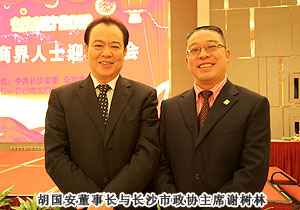 2011年12月24日,為期兩天的長沙市工商業(yè)聯(lián)合會(總商會)第十三次會員代表大會圓滿閉幕,中共長沙市委副書記、市長張劍飛,中共長沙市委常委、市委統(tǒng)戰(zhàn)部部長文樹勛出席會議并講話,會議由長沙市委統(tǒng)戰(zhàn)部副部長、市工商聯(lián)黨組書記饒福明主持,長沙市政協(xié)副主席、市工商聯(lián)主席彭繼球、長沙市委統(tǒng)戰(zhàn)部常務副部長劉映群出席大會。會議選舉產(chǎn)生了新一屆領(lǐng)導班子,作為誠信、守法、有貢獻的非公有制經(jīng)濟代表人士,綠之韻集團董事長胡國安憑借多年來積極為湖南省經(jīng)濟發(fā)展作出的貢獻,以及勇于承擔社會責任,帶領(lǐng)企業(yè)取得卓越成績的杰出表現(xiàn),再次當選長沙市工商聯(lián)(總商會)新一屆副會長。