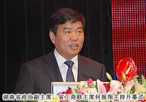 湖南省政協(xié)副主席、省工商聯(lián)主席何報翔主持了開幕式。中共湖南省委常委、常務副省長于來山致開幕詞,他表示:在加快開放發(fā)展的過程中,湘商群體加速崛起,已成為展現(xiàn)湖湘文化開放包容特性的重要現(xiàn)象,是助推湖南改革發(fā)展的重要力量。廣大湘商要繼續(xù)充分發(fā)揮凝聚效應,以湘商品牌為紐帶,強化群體意識,努力發(fā)出更多更響亮的聲音。湖南也將繼續(xù)努力為廣大投資者創(chuàng)造公開、公平、公正、可預期的發(fā)展環(huán)境,讓包括湘商在內的廣大投資者進得來、留得住,放心、放手、放膽發(fā)展。開幕式上,110個項目成功簽約,簽約總額達523億元。此外,廣東湖南商會、湖南省浙江商會等30家湖南異地商會還榮獲由湖南省人民政府設立的湖南異地商會興湘貢獻獎。