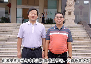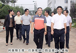 2011年9月8日上午,為更好地指導綠之韻集團“萬企聯(lián)村,共同發(fā)展——湖南益陽萬畝中藥材種植基地”省級優(yōu)秀示范項目建設(shè),湖南省政協(xié)副主席、省工商聯(lián)主席何報翔在長沙市政協(xié)副主席、長沙市工商聯(lián)主席彭繼球,中共瀏陽市委副書記、代市長曹立軍等陪同下,蒞臨綠之韻集團考察調(diào)研。同日下午,繼上次陪同何報翔主席前往郴州宜章考察縣域經(jīng)濟的發(fā)展,湖南省工商聯(lián)常委、綠之韻集團董事長胡國安再次陪同何報翔主席前往瀏陽調(diào)研非公經(jīng)濟發(fā)展。