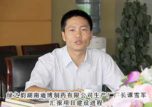 2011年8月15日,就綠之韻集團(tuán)申報(bào)“綠之韻湖南益陽萬畝中藥材種植加工市場營銷項(xiàng)目”為“萬企聯(lián)村,共同發(fā)展”活動(dòng)省級(jí)示范項(xiàng)目事宜,在中共湖南省委統(tǒng)戰(zhàn)部經(jīng)濟(jì)處處長肖玲玲、湖南省工商聯(lián)扶貧處處長甘露的帶領(lǐng)下,“萬企聯(lián)村,共同發(fā)展”考察小組蒞臨綠之韻集團(tuán)調(diào)研。董事長助理戴曉彥、綠之韻湖南迪博制藥有限公司生產(chǎn)廠廠長、益陽中藥材種植基地負(fù)責(zé)人譚雪軍匯報(bào)項(xiàng)目建設(shè)進(jìn)程。