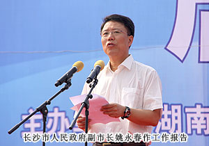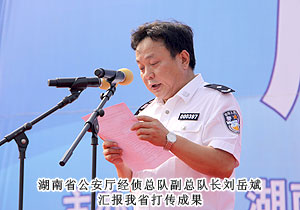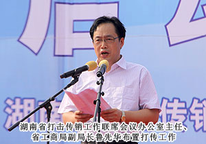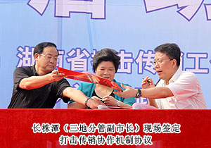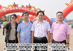 活動(dòng)現(xiàn)場,湖南省打擊傳銷工作聯(lián)席會(huì)議總召集人、湖南省人民政府副省長劉力偉,湖南省打擊傳銷工作聯(lián)席會(huì)議召集人、省工商局局長劉國湘,以及省打擊傳銷工作聯(lián)席會(huì)議成員單位領(lǐng)導(dǎo)和相關(guān)處室負(fù)責(zé)人,省工商局打擊傳銷工作領(lǐng)導(dǎo)小組成員單位負(fù)責(zé)人,長沙市人民政府、株洲市人民政府、湘潭市人民政府主管打傳工作副市長,長沙縣工商、公安機(jī)關(guān)執(zhí)法人員代表,企業(yè)、社區(qū)、學(xué)生代表,各大媒體記者共計(jì)2000余人參與活動(dòng)。湖南省打擊傳銷工作聯(lián)席會(huì)議辦公室主任、省工商局副局長魯先華、湖南省公安廳經(jīng)偵總隊(duì)副總隊(duì)長劉岳斌分別就湖南省打擊傳銷工作取得的成果與進(jìn)程作報(bào)告,長沙市人民政府副市長姚永春作重要工作報(bào)告。長株潭打擊傳銷協(xié)作機(jī)制簽署協(xié)議現(xiàn)場簽定,綠之韻集團(tuán)胡國安董事長作為湖南本土唯一一家獲牌直銷企業(yè)代表宣讀打擊傳銷倡議書,并建議將11月1日定為湖南反傳銷宣傳日。