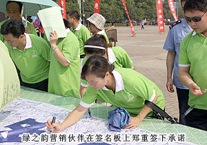 長沙市星沙通程商業(yè)廣場,精彩的表演和直銷法律法規(guī)知識(shí)問答吸引了過往行人的駐足觀看。綠之韻營銷伙伴鮮綠的T恤構(gòu)成了一道亮麗的風(fēng)景,他們不但自己仔細(xì)研讀關(guān)于打擊傳銷的宣傳冊,還積極將公司出版的《直銷法律法規(guī)88問》免費(fèi)向參會(huì)人員贈(zèng)送。隨著,湖南省打擊傳銷工作聯(lián)席會(huì)議總召集人、湖南省人民政府副省長劉力偉在會(huì)上宣布專項(xiàng)打擊行動(dòng)正式開始,綠之韻營銷伙伴在湖南省打擊(網(wǎng)絡(luò))傳銷違法犯罪專項(xiàng)行動(dòng)萬人簽名的巨幅的簽名板上,鄭重地簽下了自己的名字。