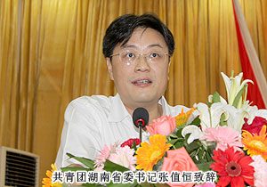 中共湖南省委常委、長(zhǎng)沙市委書(shū)記陳潤(rùn)兒發(fā)表講話(huà),對(duì)大會(huì)的順利召開(kāi)表示熱烈的祝賀。他表示:近年來(lái),全市各級(jí)共青團(tuán)組織和各界青年在市委、市政府的正確領(lǐng)導(dǎo)和高度關(guān)懷下,涌現(xiàn)了一批忠誠(chéng)黨的事業(yè)、熱愛(ài)團(tuán)的工作、勇挑社會(huì)責(zé)任的優(yōu)秀青年。廣大青年企業(yè)家要珍惜榮譽(yù),順應(yīng)發(fā)展潮流,艱苦創(chuàng)業(yè),銳意進(jìn)取,在發(fā)展壯大企業(yè)的同時(shí),敢于擔(dān)當(dāng)、服務(wù)社會(huì),成為推動(dòng)長(zhǎng)沙經(jīng)濟(jì)社會(huì)發(fā)展的一支生機(jī)勃勃的力量。共青團(tuán)湖南省委書(shū)記張值恒號(hào)召各級(jí)團(tuán)組織和廣大團(tuán)員青年要堅(jiān)定理想信念,加強(qiáng)作風(fēng)建設(shè);堅(jiān)持與時(shí)俱進(jìn),增強(qiáng)創(chuàng)新意識(shí);發(fā)奮學(xué)習(xí)求知,服務(wù)社會(huì)發(fā)展,為加強(qiáng)共青團(tuán)建設(shè),推進(jìn)長(zhǎng)沙經(jīng)濟(jì)社會(huì)新跨越做出積極貢獻(xiàn),并希望廣大青年勇立時(shí)代潮頭、盡展青春風(fēng)采,在長(zhǎng)沙的建設(shè)發(fā)展中展現(xiàn)人生價(jià)值,譜寫(xiě)更加壯麗的青春樂(lè)章。