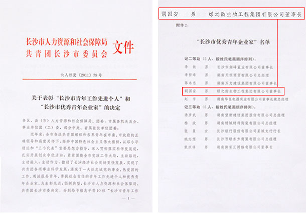 會(huì)上,為表彰先進(jìn),倡樹(shù)典型,長(zhǎng)沙市人民政府隆重表彰了“長(zhǎng)沙市優(yōu)秀青年企業(yè)家”、“長(zhǎng)沙市青年工作先進(jìn)個(gè)人”共20人。胡國(guó)安董事長(zhǎng)自2010年11月被評(píng)為“湖南省優(yōu)秀青年企業(yè)家”并記一等功以來(lái),緊緊圍繞全省黨政工作大局,深入貫徹落實(shí)科學(xué)發(fā)展觀,扎實(shí)開(kāi)展創(chuàng)先爭(zhēng)優(yōu)活動(dòng),主動(dòng)貼近,主動(dòng)融入,主動(dòng)作為,積極為湖南省經(jīng)濟(jì)的發(fā)展貢獻(xiàn)力量。此次表彰中,胡國(guó)安董事長(zhǎng)榮獲“長(zhǎng)沙市優(yōu)秀青年企業(yè)家”稱(chēng)號(hào),并記二等功。