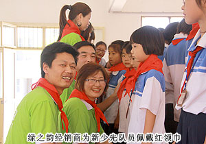 綠之韻集團(tuán)秉承回饋社會(huì)的經(jīng)營理念 ,在發(fā)展中勇于承擔(dān)社會(huì)責(zé)任,從2004年捐助第一所綠之韻老屋希望小學(xué)開始就為更多的農(nóng)村孩子提供更多幫助。綠之韻集團(tuán)一直也關(guān)注著留守兒童這一特殊群體,2011年5月30日,在六一國際兒童即將來臨的時(shí)候,綠之韻慈善基金總執(zhí)行戴曉彥號(hào)召湖南當(dāng)?shù)氐膬?yōu)秀經(jīng)銷商們?yōu)槔衔菹MW(xué)的孩子們送上了六一節(jié)的禮物。綠之韻集團(tuán)董事常務(wù)副總裁勞嘉代表集團(tuán)領(lǐng)導(dǎo)及員工慰問了綠之韻老屋希望小學(xué)的留守兒童,并發(fā)表了講話,鼓勵(lì)孩子們要努力學(xué)習(xí),從小學(xué)會(huì)感恩社會(huì)、感恩學(xué)校和老師,樹立起遠(yuǎn)大的理想,爭(zhēng)做祖國的棟梁之才。在慰問活動(dòng)中,老屋希望小學(xué)還策劃了“紅領(lǐng)巾我為你自豪”的少先隊(duì)入隊(duì)儀式,綠之韻經(jīng)銷商和員工代表一起參加了神圣而光榮的少先隊(duì)員入隊(duì)儀式,并榮幸的為新隊(duì)員佩戴紅領(lǐng)巾,祝愿新老隊(duì)員能相互幫助共同進(jìn)步。綠之韻老屋希望小學(xué)的校長也為綠之韻長期以來關(guān)注教育關(guān)愛青少年兒童的成長表示了真摯的感謝。