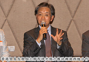 蘇澤光主席表示,最近,湖南在香港很“熱”,越來越多的港企來到湖南投資。香港貿(mào)發(fā)局將進一步發(fā)揮窗口和橋梁作用,推動湘港兩地在現(xiàn)代服務業(yè)、創(chuàng)意產(chǎn)業(yè)等領域深化合作,幫助湘企借助香港平臺走向世界。