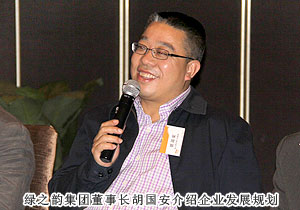 2011年5月6日,香港貿(mào)易發(fā)展局主席蘇澤光一行來湘考察,拜會中共湖南省委副書記、省長徐守盛。湖南省政協(xié)副主席何報翔,省政府秘書長盛茂林,省直相關部門負責人參加會見。同時,在湖南省工商業(yè)聯(lián)合會的組織下,蘇澤光主席一行會見了湖南省首屈一指的商界領軍人物,綠之韻集團作為湖南省第一家直銷企業(yè),胡國安董事長作為湖南省優(yōu)秀青年企業(yè)家、中國十大杰出湘商、湖南省十大營銷風云人物,受到蘇澤光主席的親切會見。