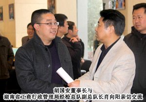 考察組一行首先聽取了綠之韻集團企業(yè)發(fā)展、產(chǎn)品規(guī)劃、市場建設(shè)等方面的工作介紹,隨后,又就新形勢下的直銷企業(yè)規(guī)范管理工作與綠之韻集團董事長胡國安、董事常務(wù)副總裁勞嘉作了深度交流。綠之韻董事常務(wù)副總裁勞嘉對湖南省十四州市工商系統(tǒng)一直以來對綠之韻集團的關(guān)心支持表示感謝,同時,對2011年綠之韻在分公司建設(shè)、服務(wù)網(wǎng)點建設(shè)、直銷區(qū)域增設(shè)等工作作了匯報;胡國安董事長就綠之韻發(fā)展歷程、產(chǎn)業(yè)定位、社會責(zé)任等方面工作的開展誠懇邀請各工商主管部門領(lǐng)導(dǎo)給予監(jiān)督指導(dǎo)。