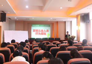 在培訓(xùn)學(xué)習(xí)中,集團(tuán)員工近300人共同學(xué)習(xí)了綠之韻最新推出的《直銷從業(yè)人員行為規(guī)范知識88問》及《直銷從業(yè)法律法規(guī)匯編》。結(jié)合實(shí)際工作,提升了員工對直銷行業(yè)規(guī)范經(jīng)營的意識,有效地增強(qiáng)專業(yè)化的服務(wù)水平和管理能力。繼2011年度高峰論壇三千精英學(xué)習(xí)直銷法律法規(guī)之后,集團(tuán)將員工學(xué)習(xí)直銷法律法規(guī)進(jìn)行普及,為深化綠之韻規(guī)范經(jīng)營打下堅(jiān)實(shí)基礎(chǔ)。作為中西部第一家獲得國家商務(wù)批準(zhǔn)的直銷企業(yè),綠之韻集團(tuán)將始終堅(jiān)持“低調(diào)運(yùn)作,行業(yè)自律”的經(jīng)營法則,為直銷行業(yè)的規(guī)范有序發(fā)展起到推動(dòng)作用。