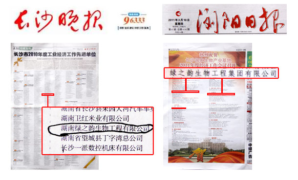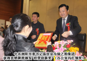 2011年3月10日,長沙國家生物產業(yè)基地經濟工作會議在瀏陽市行政中心隆重召開。中共長沙市委常委、瀏陽市委書記易佳良、長沙市人民政府副市長何寄華、湖南省科技廳副廳長羅亞軍等省市級政府領導出席會議并發(fā)表重要講話。綠之韻集團榮獲“2010年度稅收過千萬企業(yè)”“經營創(chuàng)新獎”“目標管理一等獎”“統計工作先進單位” 多項殊榮;綠之韻迪博制藥有限公司在2010年獲評“湖南省著名商標”獲得“名牌產品獎”。綠之韻員工陳英、易利群榮獲“2010年度統計工作先進個人”。綠之韻集團董事長胡國安出席領獎并接受產業(yè)基地下達的2011年目標管理任務書。