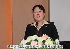 在全體綠之韻人鏗鏘有力的工作宣言中,新的希望化成新的動力,為每一位綠之韻人注入力量。市場總監(jiān)諶獻軍作市場工作報告,新牌照的獲得、新規(guī)劃的推出、新產(chǎn)品的上市等都成為推動市場發(fā)展最有力的臂膀。執(zhí)行總經(jīng)理龔振針對2011年市場營運發(fā)表講話,以強有力的扶持措施和各項企劃活動為依托,以必勝的信念引導(dǎo)市場發(fā)展。董事常務(wù)副總裁勞嘉作內(nèi)部管理工作報告,總結(jié)2010年企業(yè)在強化服務(wù)、資源整合、產(chǎn)品多元等方面取得的成績,同時提出來年具體的工作要求。
