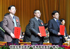 根據(jù)《關(guān)于湖南省政協(xié)委員履行職責(zé)的辦法(試行)》“在每一屆政協(xié)的第三、第五年,按照委員總數(shù)的8%評選優(yōu)秀政協(xié)委員”的要求,省政協(xié)將在年底評選優(yōu)秀省政協(xié)委員。優(yōu)秀省政協(xié)委員評選條件為:積極主動(dòng)參加政協(xié)活動(dòng),并在其中起骨干作用;履行職責(zé)成果顯著,建言獻(xiàn)策轉(zhuǎn)化率高;為地方經(jīng)濟(jì)社會(huì)發(fā)展作出的貢獻(xiàn)較大。評選采取量化的辦法,依據(jù)政協(xié)職能和委員職責(zé),設(shè)置了參加政協(xié)例會(huì)情況、撰寫提案及辦理情況、社情民意采用及轉(zhuǎn)化情況、參加調(diào)研情況等9個(gè)計(jì)分項(xiàng)目。擔(dān)任政協(xié)委員期間,胡國安委員先后提交了《我省民企應(yīng)對金融危機(jī)的對策及建議》《關(guān)于下調(diào)武廣高鐵票價(jià)》等多份關(guān)系經(jīng)濟(jì)發(fā)展及社會(huì)民生的提案,并多次深入一線調(diào)研,實(shí)實(shí)在在了解民眾,及時(shí)提出建議,最終獲評“優(yōu)秀政協(xié)委員”榮譽(yù)稱號。湖南衛(wèi)視、湖南經(jīng)視、紅網(wǎng)、《瀟湘晨報(bào)》《長沙晚報(bào)》《人民政協(xié)報(bào)》等多家權(quán)威媒體對胡國安委員的先進(jìn)事跡進(jìn)行了報(bào)道!