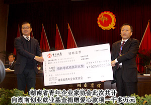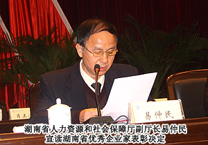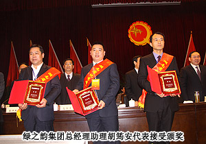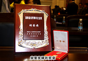 本次大會,由湖南省人力資源和社會保障廳、湖南共青團(tuán)省委聯(lián)合舉辦的“湖南省優(yōu)秀青年企業(yè)家”評選活動結(jié)果揭曉,綠之韻集團(tuán)董事長胡國安憑借在健康產(chǎn)業(yè)作出的突出貢獻(xiàn)以及對社會責(zé)任的勇于承擔(dān),榮獲“湖南省優(yōu)秀青年企業(yè)家”稱號,湖南省人民政府記一等功。綠之韻集團(tuán)在此次會議中向湖南創(chuàng)業(yè)就業(yè)基金捐贈100萬專項(xiàng)愛心款項(xiàng),用于資助大學(xué)生創(chuàng)業(yè)就業(yè)。共青團(tuán)湖南省委副書記顏海林介紹說,改革開放以來,湖南廣大青年企業(yè)家活躍在經(jīng)濟(jì)建設(shè)的各個(gè)領(lǐng)域,為湖南經(jīng)濟(jì)社會發(fā)展做出了很大貢獻(xiàn)。為了激勵青年企業(yè)家為湖南經(jīng)濟(jì)發(fā)展做出更大貢獻(xiàn),省人力資源和社會保障廳在經(jīng)過評選、公示及企業(yè)家綜合指標(biāo)反復(fù)審核之后,對評出的前10名青年企業(yè)家湖南省人民政府給予記一等功的獎勵,另30名青年企業(yè)家湖南省人民政府給予記二等功的獎勵。