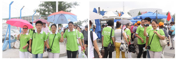 兩百多個(gè)國(guó)家的展館想要全部看完是不可能的,大家按照自己的喜好分散行動(dòng),每個(gè)人的感受與收獲都不相同。雖然每個(gè)展區(qū)前面都排著長(zhǎng)長(zhǎng)的隊(duì)伍,但現(xiàn)場(chǎng)仍是井然有序,綠之韻人標(biāo)志性的綠色T恤與園區(qū)志愿者的服裝十分相似,使得總有許“粗心”的游客把分銷(xiāo)伙伴當(dāng)志愿者請(qǐng)求幫助,熱心的綠之韻精英們,也十分樂(lè)意的積極為大家排憂(yōu),以自己的行動(dòng)為身上的綠衣服增添了光彩。每一個(gè)館門(mén)前的隊(duì)伍很長(zhǎng),總以為馬上要到頭了,結(jié)果山重水復(fù)又出來(lái)一圈長(zhǎng)隊(duì)??申?duì)伍又不停地在往前移動(dòng)著,所以大家也都不至于絕望,還有說(shuō)有笑地等待著。隨機(jī)采訪(fǎng)此次參加旅游的分銷(xiāo)精英,有的居然一天之內(nèi)看了二十多個(gè)場(chǎng)館,提起所見(jiàn)、所聞、所感,眉飛色舞,紛紛感嘆累雖然累,但這樣的好機(jī)會(huì)卻真是千載難逢。作為從事綠色健康事業(yè)的分銷(xiāo)精英們,在“城市,讓生活更美好”的主題前面對(duì)那抹鮮亮的綠色,更增添了一份親切認(rèn)同以及自豪感。