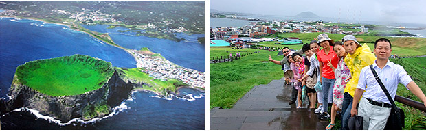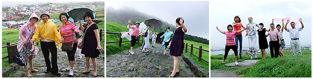 濟(jì)州島是韓國(guó)最美麗的島嶼,韓國(guó)新婚夫妻以及情侶都會(huì)在這里共度浪漫時(shí)光,因此又有著“蜜月之島”和“浪漫之島”的美稱。在這里,伙伴們充份領(lǐng)略了濟(jì)州島的三多:石頭多、風(fēng)多、海產(chǎn)多。讓大家嘖嘖稱奇的是,因?yàn)闆]有小偷與乞丐,在島上的民宅里看不到一扇大門,島上居民民心宛如波光耀的大自然與豐富的果實(shí),純潔美麗?;锇閭儏⒂^了天地淵、2002年世界杯賽事體育場(chǎng)等旅游景點(diǎn),體驗(yàn)濟(jì)州島海水溫泉以及傳統(tǒng)養(yǎng)生汗蒸,穿著韓服學(xué)習(xí)如何制作泡菜,一個(gè)個(gè)樂不思蜀。濟(jì)州民俗村博物館再現(xiàn)了19世紀(jì)濟(jì)州島的風(fēng)情,在這里可以了解韓國(guó)民族歷史以及生活習(xí)慣同時(shí)也可以選購(gòu)享譽(yù)全球的高麗參,為親朋好友挑選一份合意的禮物。魅力濟(jì)州島以暴雨迎接了前來參觀的伙伴,但也充分展現(xiàn)了它的熱情與魅力,大家的游興絲毫沒有受到影響反而多出一種“欲與天公試比高”的豪情。