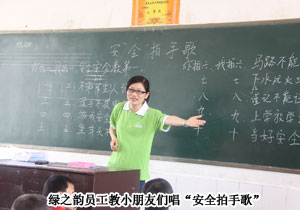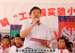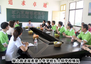 2010年5月31日,“綠之韻樹人行動”走進(jìn)集團捐贈的第一所希望學(xué)?!衔菹MW(xué)看望慰問留守兒童。綠之韻集團董事常務(wù)副總經(jīng)理勞嘉、總經(jīng)理助理戴曉彥及總部工作人員一行與湖南地區(qū)的愛心分銷商代表張建軍、黃翔、李正元、周書明、沈慧芳等精心準(zhǔn)備了書包、作業(yè)本、文具盒、羽毛球拍等愛心物資,為留守兒童送去了“六?一”兒童節(jié)的祝福。同時,總部工作人員走進(jìn)教室,與小朋友們一起唱歌、玩游戲,快樂溫馨的場面,讓“綠之韻樹人行動”的愛心理念再次升華。