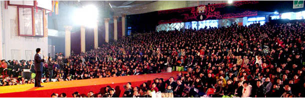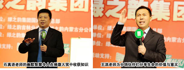來自祖國(guó)的大江南北的綠之韻精英們,中午只做了片刻的休息,仍然保持著積極的狀態(tài)投入到下午的峰會(huì)。著名銷售專家,營(yíng)銷團(tuán)隊(duì)建設(shè)管理專家,營(yíng)銷界的“瘋狂訓(xùn)練大師”、“培訓(xùn)界的趙本山”石真語以其幽默的演講風(fēng)格、敏捷的思維闡述了現(xiàn)代社會(huì)的營(yíng)銷先進(jìn)理念和方法:從人生需要規(guī)劃、世界需要營(yíng)銷、業(yè)績(jī)決定一切三個(gè)方面,為廣大分銷商開拓市場(chǎng)打開銷售渠道提供了積極的指導(dǎo)。和諧成功學(xué)創(chuàng)始人、兩性關(guān)系疏導(dǎo)專家、體驗(yàn)式教練技術(shù)杰出教練王淇在現(xiàn)場(chǎng)通過游戲互動(dòng)與體驗(yàn)課程分享事業(yè)成功所必須懂得的智慧和付出的價(jià)值。圍繞著綠之韻事業(yè)發(fā)展所帶來的和諧情感和企業(yè)展示出來的希望和力量進(jìn)行了動(dòng)情演講。綠之韻集團(tuán)總部的員工也在整場(chǎng)峰會(huì)中表演了《相信我們會(huì)創(chuàng)造奇跡》、《在路上》等精彩節(jié)目。最后,綠之韻集團(tuán)董事長(zhǎng)胡國(guó)安先生就如何達(dá)到“共贏”、如何帶動(dòng)“就業(yè)”、如何推動(dòng)綠之韻事業(yè)穩(wěn)定快速成長(zhǎng)發(fā)表講話。胡總在發(fā)言中說:回顧公司從小到大,從無到有,是因?yàn)橛辛讼嘈帕肆α?,才有了所有綠之韻人夢(mèng)想成真的今天。我們應(yīng)該相信自己,相信自己的選擇和實(shí)力,相信自己成長(zhǎng)中所有的經(jīng)歷都是我們積蓄力量實(shí)現(xiàn)共贏的過程。
