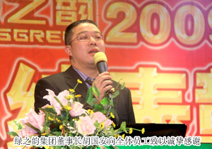 綠之韻集團(tuán)執(zhí)行總經(jīng)理龔振、董事常務(wù)副總經(jīng)理勞嘉、市場總監(jiān)諶獻(xiàn)軍在會上對2009年的工作作了總結(jié)并提出2010年工作的整體規(guī)劃。董事長胡國安作全年總結(jié)及來年展望的重要發(fā)言,就2009年度所取得的成績向全體員工表示誠摯的謝意,并向大家致以新年的問候。號召全體員工在觀念、戰(zhàn)略、人力資源、技術(shù)和管理方面繼續(xù)創(chuàng)新,自強(qiáng)不息,勤奮拼搏,把握新一年的機(jī)遇,實現(xiàn)更大的跨越和發(fā)展。