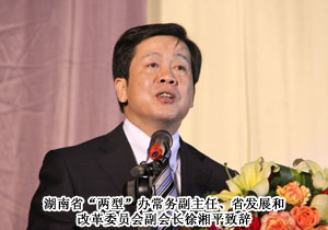 會上,湖南省“兩型”辦常務副主任、省發(fā)展和改革委員會副會長徐湘平在致辭中表示,此次聯(lián)誼會不僅是各級政府對新湘商促進湖南省經(jīng)濟發(fā)展作出貢獻的充分肯定,也為禮贊新湘商敢為人先、不屈不撓的進取精神,新產(chǎn)業(yè)需要新湘商,新湘商更要有時代意識,更有創(chuàng)新意識,更注重產(chǎn)業(yè)與自然生態(tài)的協(xié)調(diào),更注重社會效益,省委、省政府對新湘商的崛起充滿了殷切期待。同時,湖南省委常委、長沙市委書記陳潤兒發(fā)來賀辭,并鼓勵湘商再建新功、再創(chuàng)佳績。