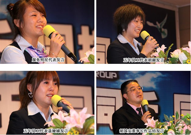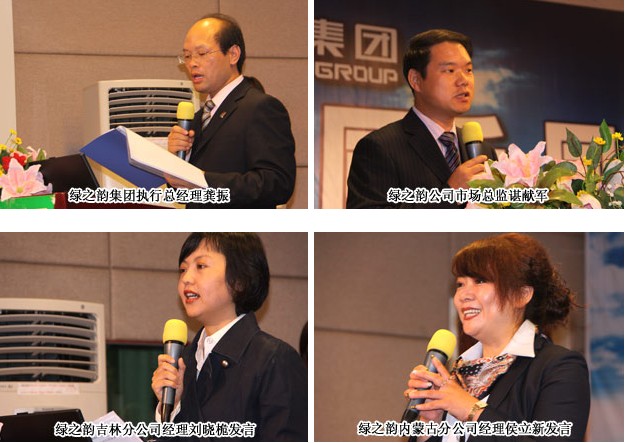 原綠之韻市部拓展部經理諶獻軍榮升為綠之韻公司市場總監(jiān),在本次大會上他對未來綠之韻的市場拓展工作作出分析和展望。吉林分公司經理劉曉桅、內蒙古分公司經理侯立新,以《風雨來時路》《管理=任務、責任、實踐》為題,在員工大會做了充滿激情的述職演講。同時也向總公司傳遞著目前分公司發(fā)展呈現出來的喜人勢頭,讓總公司更清楚的了解到來自市場第一線的最新捷報。隨后,綠之韻公司2009年度評選出來的服務明星代表楊恬,也在大會上做了精彩發(fā)言。綠之韻集團董事常務副總經理勞嘉女士,在大會上指出目前公司發(fā)展中面臨的具體工作分析和規(guī)劃,強調2010年公司原有的“五心”服務將提升為“五星”服務。綠之韻集團執(zhí)行總經理龔振對目前綠之韻山東分公司、河北分公司、馬來西亞分公司的籌備工作進行了部署,對未來五年的公司發(fā)展描繪出充滿激情和陽光的藍圖。綠之韻集團董事長胡國安的總結發(fā)言將本次大會“同心、同樂、同拼搏”的主題更真切地留在了每一位員工的心中。