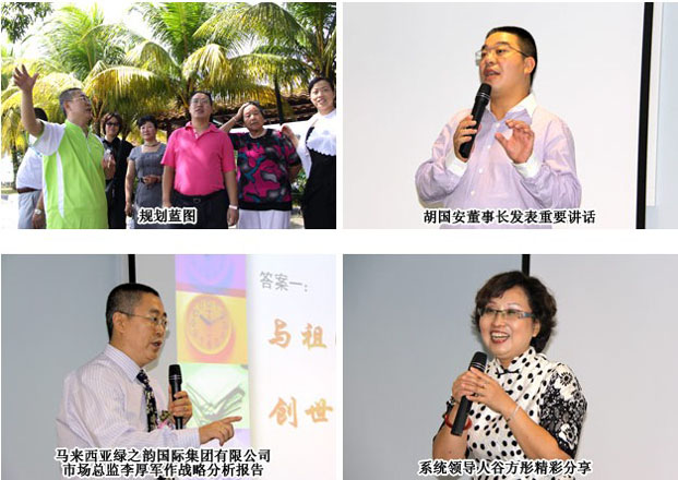 馬來西亞綠之韻國際集團有限公司市場總監(jiān)李厚軍為大家做了詳細的市場戰(zhàn)略解析報告,就馬來西亞公司成立的優(yōu)勢,產(chǎn)品籌備,如何對接國際化市場業(yè)務等方面深入分析,極大堅定了與會精英開拓市場的信心,也指明了國際市場運作方向。國際市場戰(zhàn)略領導人就綠之韻國際戰(zhàn)略營銷目標和實現(xiàn)目標將采取的策略做了具體闡述,同時向大家展示了試營業(yè)期間馬來西亞綠之韻國際集團有限公司所取得的成績,拉開了綠之韻國際市場大發(fā)展的序幕。系統(tǒng)領導谷方彤及馬來西亞市場精英梁金明、鄭天祥分別在會議上作了精彩分享。