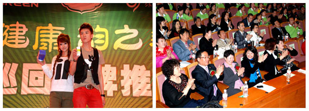 下午,數(shù)千名分銷精英還參加了由公司舉辦的——綠之健康 韻之美麗 全國巡回品牌推廣。此次活動,旨在讓分銷伙伴對集團公司兩大子品牌——綠韻蘭茜護膚品以及韻宜生健康食品子品牌形象及內(nèi)涵有更深入的了解,將綠之韻“把中國最好的產(chǎn)品以最快的速度傳遞給最需要的人”這一使命,更好的傳遞給分銷商伙伴。推廣會現(xiàn)場火爆非常,只能容納千人的會場讓許多分銷商伙伴感嘆,一票難求。