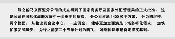 綠之韻馬來西亞分公司將于六月底試營業(yè)