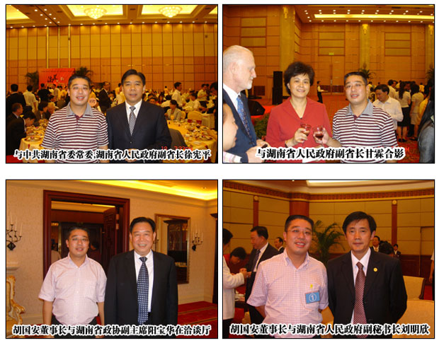 18日中午,由中共湖南省委副書記、省長周強,副省長甘霖,湖南省政協(xié)副主席陽寶華等湖南省黨政代表,在上海國際會議中心明珠廳會見了港澳臺及國內(nèi)外知名企業(yè)代表。綠之韻集團董事長胡國安先生作為世界華商(總商會)副會長及湖南省知名企業(yè)家代表受邀出席會議。在會上聽取了省長周強對企業(yè)發(fā)展和政府關(guān)懷的講話,積極參與到與中外客商項目洽談中,并出資1800萬與南京大學(xué)聯(lián)合研究開發(fā)國家重點科研項目藻類蛋白。