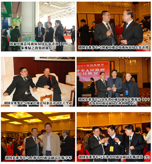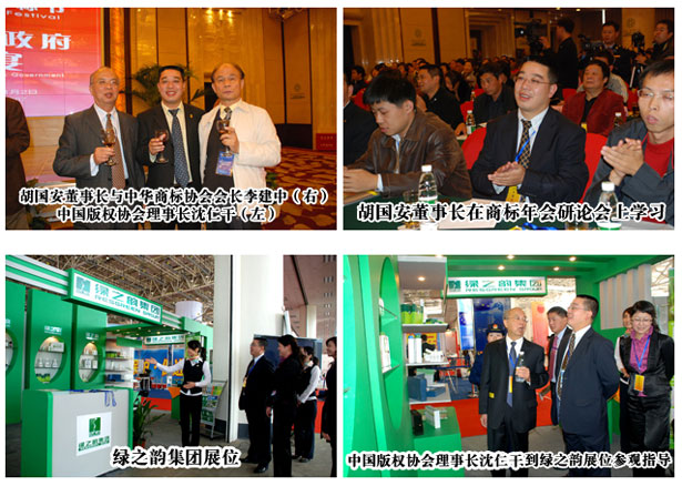2007年11月3-6日,2007中國商標(biāo)年會在長沙召開。此次商標(biāo)節(jié)由中國工商總局批準(zhǔn),中華商標(biāo)協(xié)會和長沙市人民政府共同主辦,圍繞商標(biāo)保護權(quán)益、促進和諧發(fā)展的時代主題,通過相關(guān)論壇及廣泛的國內(nèi)外交流活動,營造有利于保護自主品牌,促進科學(xué)發(fā)展、共同發(fā)展、和諧發(fā)展,謀求和諧共贏的國際環(huán)境,促進我國商標(biāo)事業(yè)的發(fā)展。本次商標(biāo)年會吸引了世界知識產(chǎn)權(quán)組織、美國專利商標(biāo)局官員,中外知名企業(yè)代表以及中國工商、海關(guān)、公安等相關(guān)領(lǐng)域卓越成就的專家、學(xué)者紛紛參加,并帶來了各自獨到見解。全國人大常委會副委員長蔣正華、國家工商總局副局長李東生、世界知識產(chǎn)權(quán)組織助理總干事王彬穎、中華商標(biāo)協(xié)會會長李建中、長沙市人民政府市長譚仲池、湖南省工商局局長張漢良、國際商標(biāo)協(xié)會前主席Anne.Chasser、歐洲內(nèi)部市場協(xié)調(diào)局司長Beate. Schmidt以及全國各省市工商行政管理局領(lǐng)導(dǎo)以及一大批商標(biāo)專家、優(yōu)秀企業(yè)家出席了本次年會,綠之韻集團作為湖南省的重點品牌推薦企業(yè)也應(yīng)邀請參展,綠之韻集團董事長兼總裁胡國安先生和綠之韻集團常務(wù)副總經(jīng)理勞嘉女士出席了本次商標(biāo)節(jié)年會的各項專題研討會和交流。