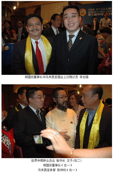 聯(lián)合國和平基金組織干事、世界華商聯(lián)合總會(huì)秘書長王予、馬來西亞拿督張祥豹、葉炳漢、馬來西亞上議院國會(huì)議員李志強(qiáng)、原中國國家工商總局公平交易局局長李必達(dá),晨訊傳媒產(chǎn)業(yè)機(jī)構(gòu)總裁禹路、中國臺(tái)灣傳智集團(tuán)總裁李久慈、中國臺(tái)灣國立中山大學(xué)直銷術(shù)研發(fā)中心主任陳得發(fā)、中國管理科學(xué)研究院市場營銷所特約研究員胡遠(yuǎn)江等70多位行業(yè)權(quán)威專家和馬來西亞政府代表及相關(guān)政府組織官員出席大會(huì)。