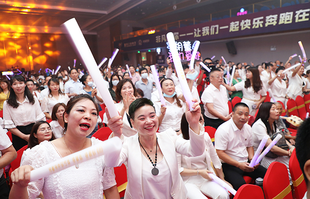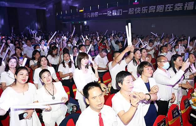 “關于理想,關于人生,最大的遺憾不是‘我做不到’,而是‘我本可以’。我深信,敢為的人生最精彩”。熱烈的掌聲中,綠之韻集團執(zhí)行總經(jīng)理夏運良登上舞臺作主題演講。他從“國家、企業(yè)和幸福代言人”三個維度系統(tǒng)地闡述了“非凡的你”的深刻涵義;從“文化、產(chǎn)品、培訓、服務和活動”五個方面對綠之韻幸福國際破解幸福密碼進行了分析和總結。一年的時間,在綠之韻這個事業(yè)平臺上,幸福國際像一棵梧桐樹不斷地生長、扎根、壯大,不斷突破目標、創(chuàng)造奇跡,是因為每一位幸福代言人腳踏實地、一步一個腳印干事業(yè)。他衷心希望,在未來通向幸福的道路上,每一位幸福代言人都能全力以赴,攜手前進,共同創(chuàng)造非凡未來!“一群人一條路,堅持一直走下去。在一起不容易,相守更加了不起。一群人一條心,再苦再累也愿意。在一起不容易,點亮生命不放棄?!痹凇恫环艞墶返囊魳仿曋?,現(xiàn)場家人們齊聲合唱,感動、感恩、幸運、幸福交織融匯,大會氣氛到達最高潮……
