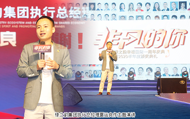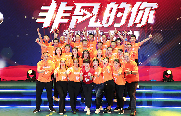 2020年6月21日,非凡的你——綠之韻幸福國際一周年慶典暨2020半年度頒獎典禮在集團總部國際會議中心成功舉行。綠之韻集團董事、總裁勞嘉,總經(jīng)理劉維利,執(zhí)行總經(jīng)理夏運良及高管團隊,與來自全國各地的1000余名綠之韻家人匯聚一堂,共襄盛舉。大會全程通過PC、移動端在線互動視頻直播,線上20000多人共同收看和分享了大會盛況。